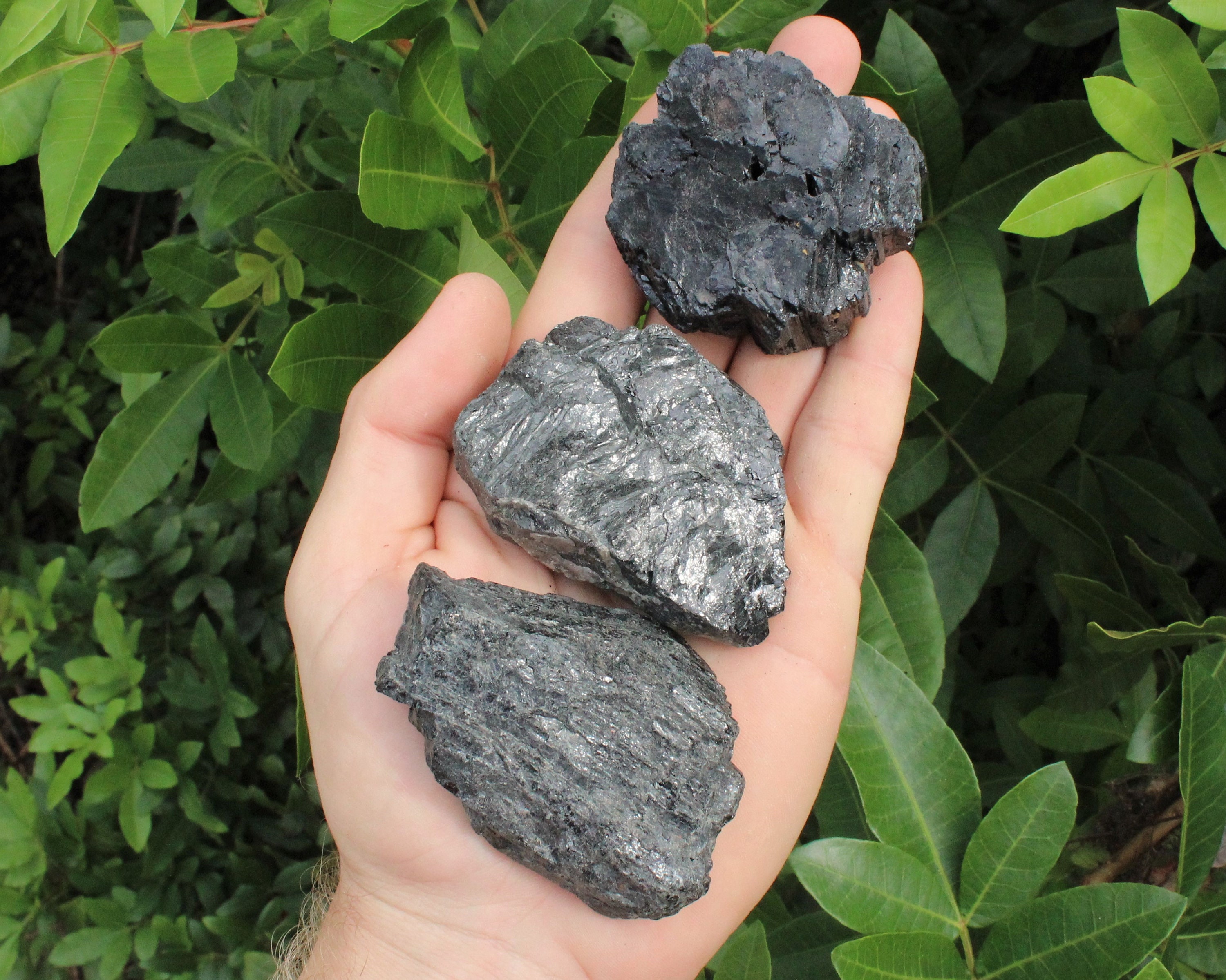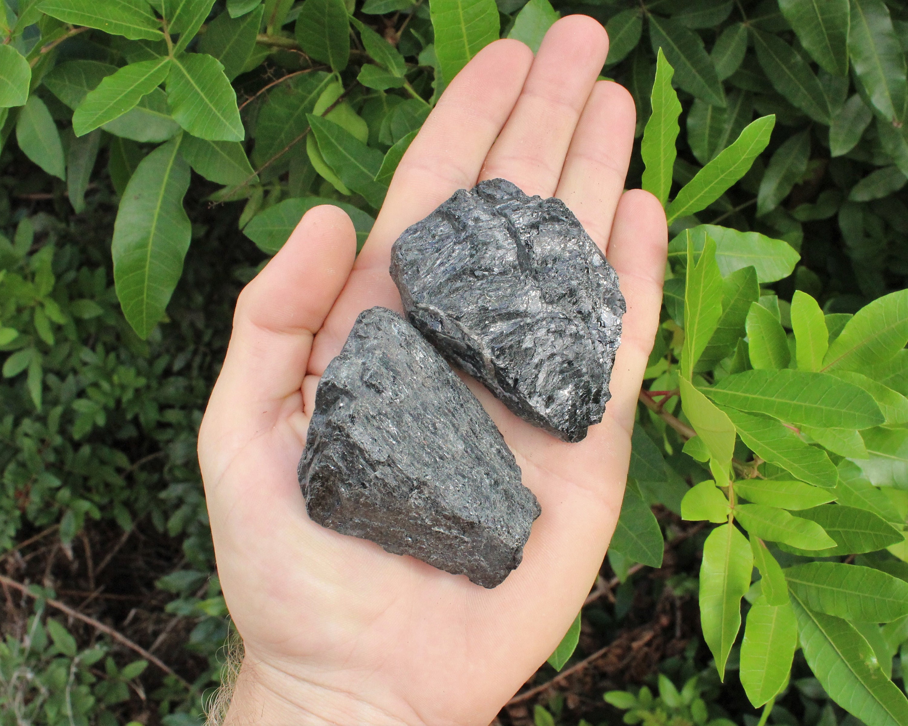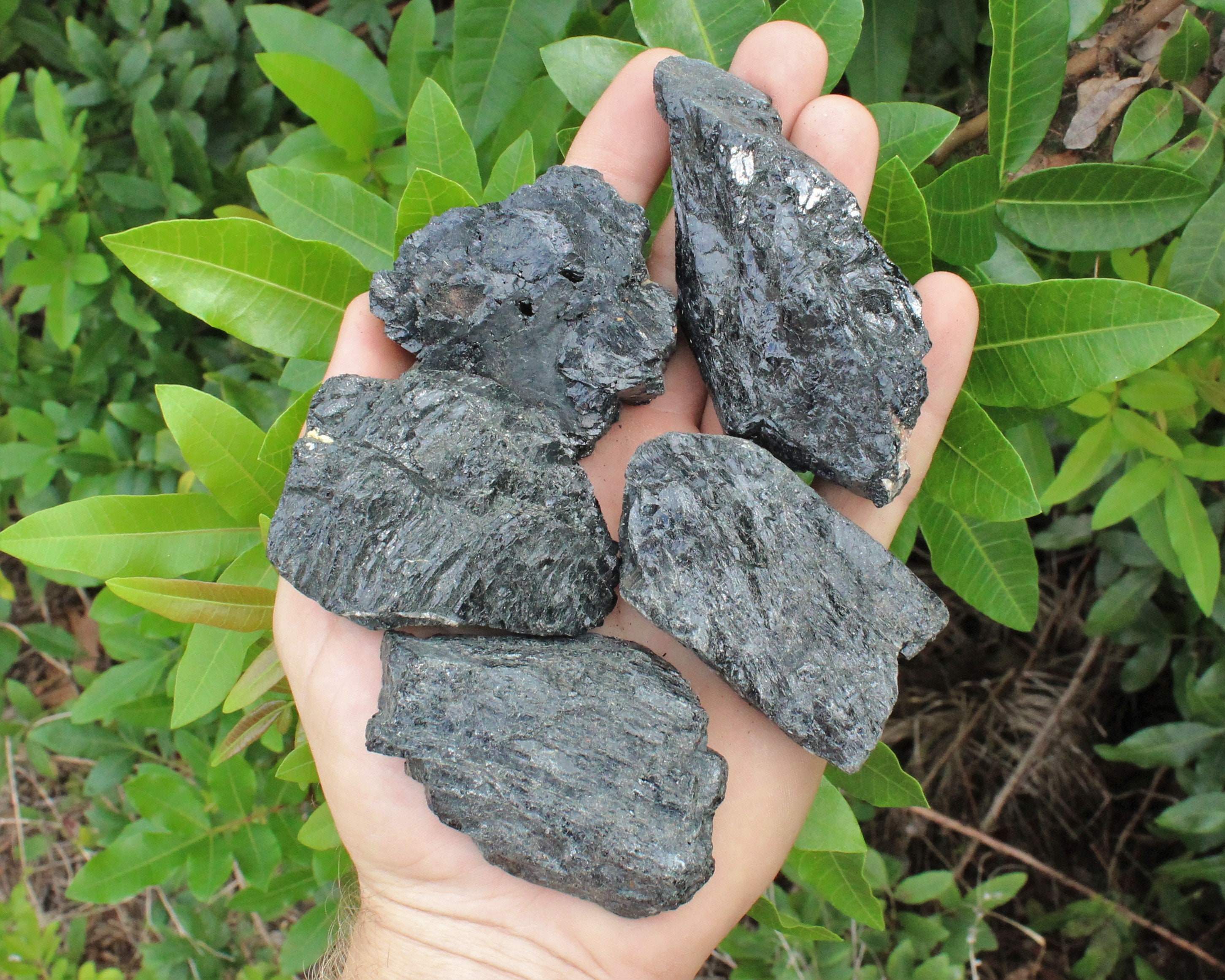 LARGE Natural Rough Black Tourmaline Crystals in your choice of amounts, each sized between about 2" to 3", from Brazil. Very nice regular grade specimens. These lots contain beautiful hand picked pieces of Rough Black Tourmaline.