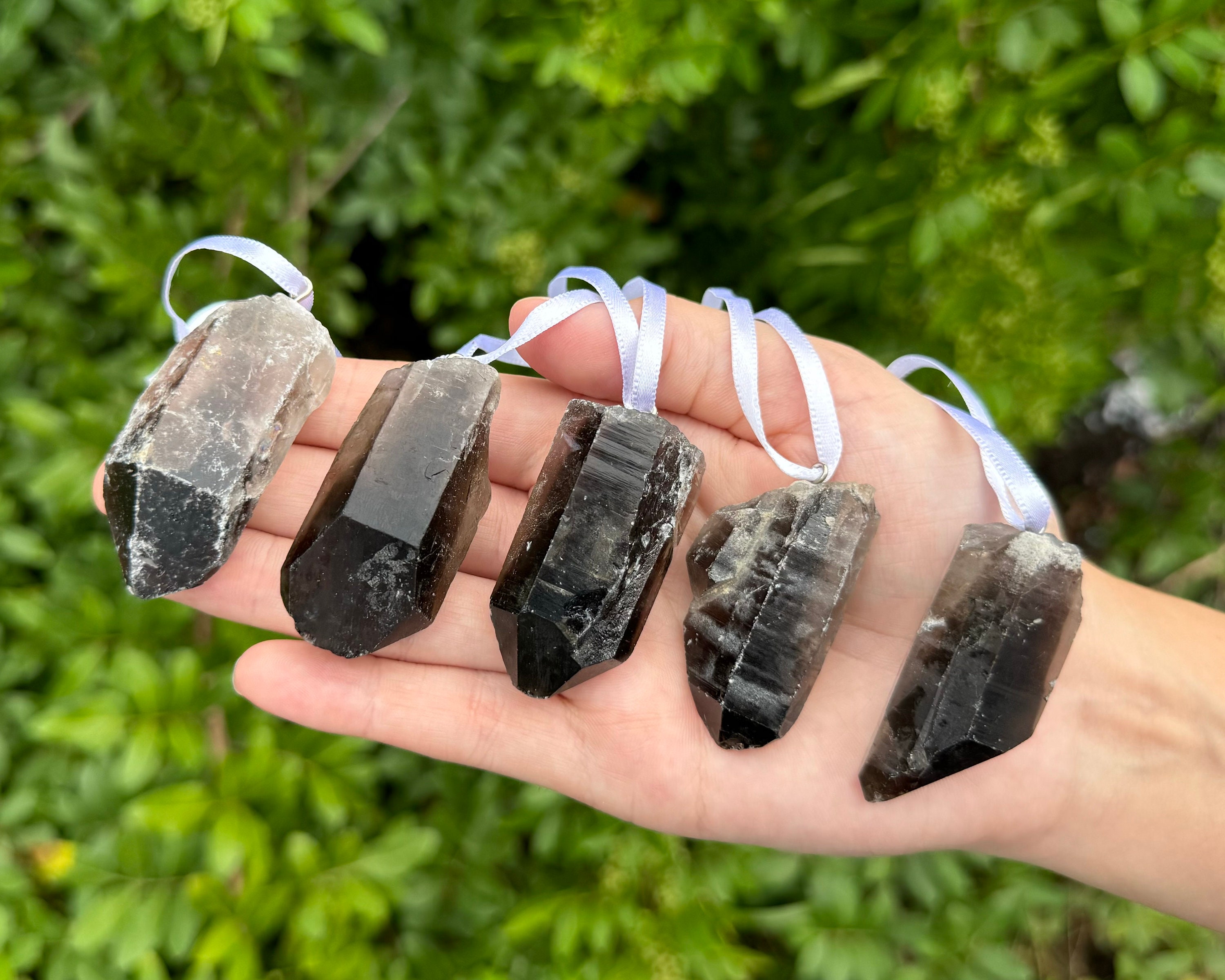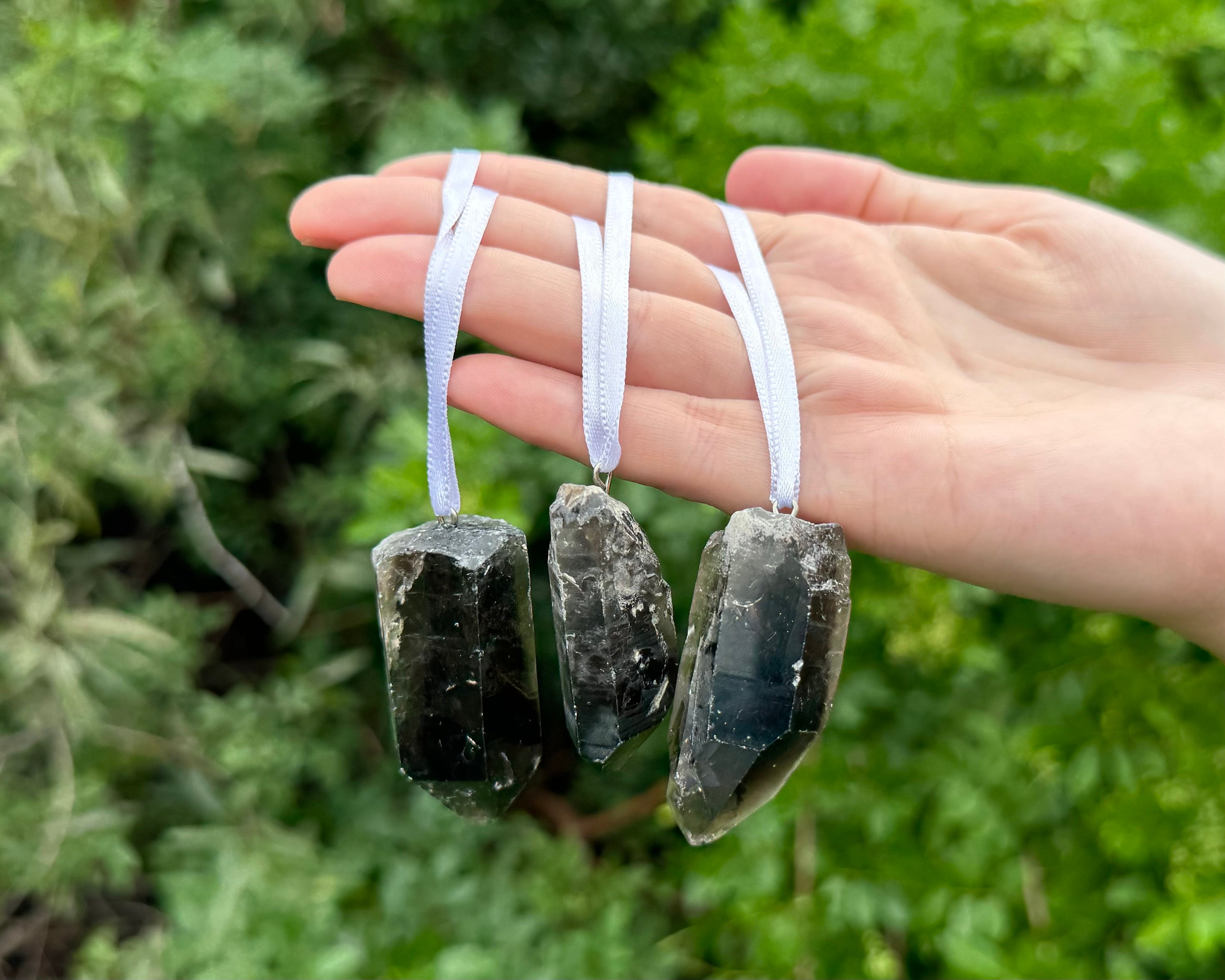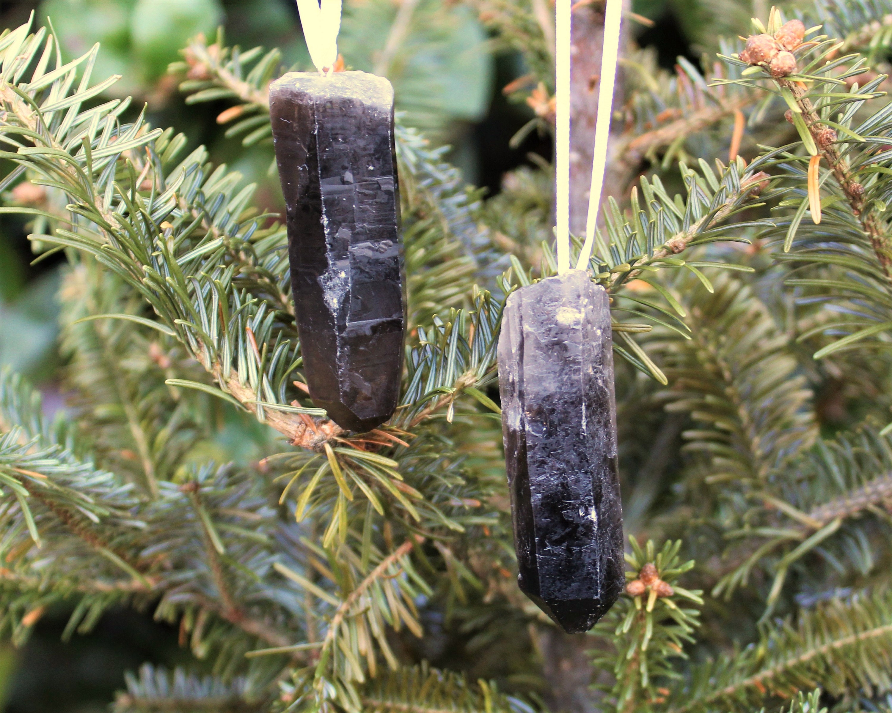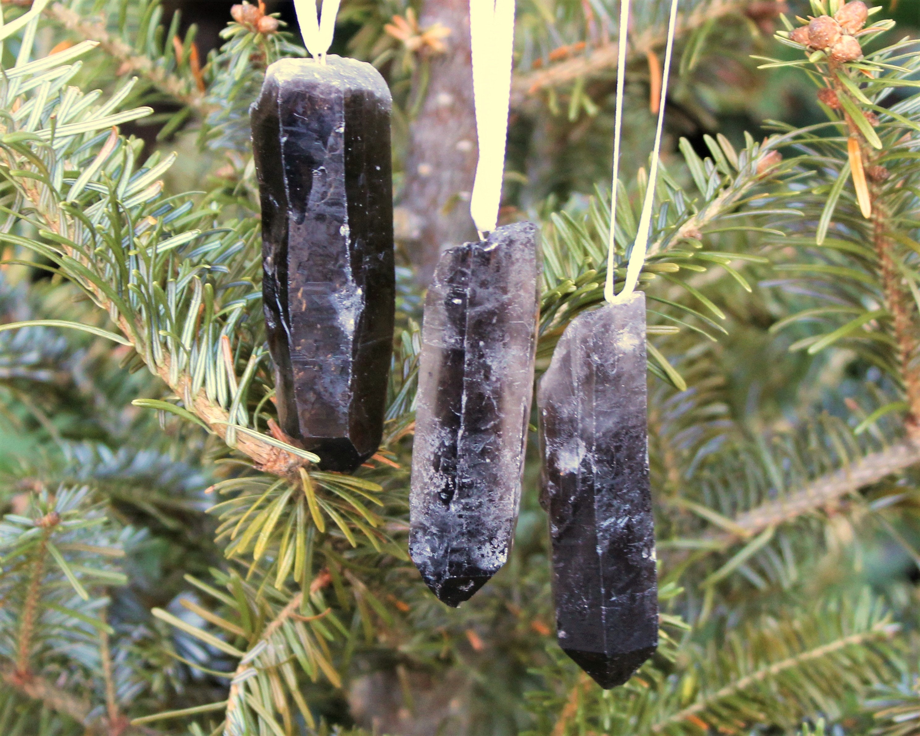 Beautiful Smoky Quartz Point Crystal Ornaments. Great for Holiday time decoration or even just to hang around the house / person for the wonderful beauty and energy! You can hang these wonderful Smoky Quartz crystals around your home all year long!