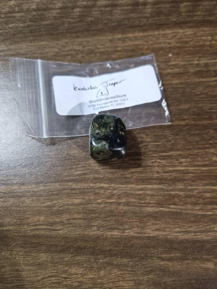 Tumbled Kambaba Jasper crystals from Madagascar - about 0.75" - 1" +/-. This nurturing stone is used commonly in healing and is a great stone to bring peace, calm and tranquility to those who are troubled. Filled with natures green nurturing energy this is also a stone believed to remove negative energy - again promoting the feeling of tranquility. The stone is also known as Green Stromatolite Jasper, and can also be referred to as Crocodile Rock or Crocodile Jasper - it is also often referred to as the 'Supreme Nurturer'. It is strongly associated with the Heart Chakra, is a great grounding stone and wonderful to meditate with.