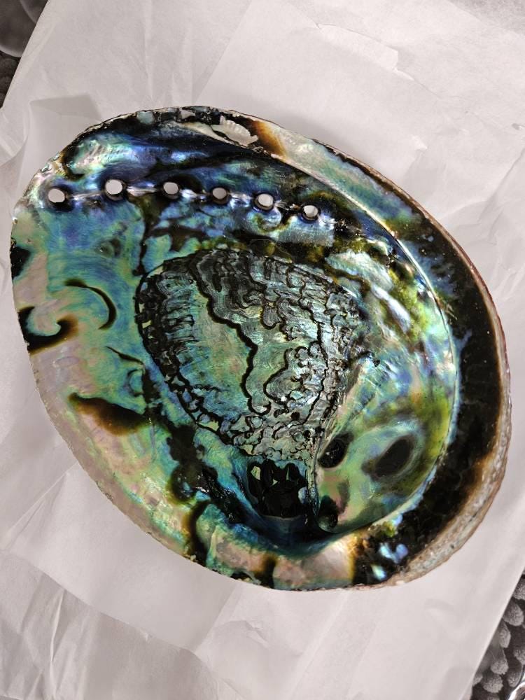 All our abalone shells are super nice retail grade quality, not museum quality. They are real. The backs may have cuts, scrapes, holes, scars and blemishes. If you look at the posted pictures you will see the holes which are common to 99.99% of these shells. Some of the edges may have an odd small chip. Some have a clear glaze or polished interior to reveal beautiful shades of greens, blues and silver and many other colors, many with some black accents. Black on the inside does not mean the shell has been used – it is a natural coloration in some shells. These shells are perfect for smudging ceremonies and can also burn resins, etc. They also can act as a storage home for your smudge sticks or as a beautiful natural home decoration, great for holding and displaying tumble stones, etc.