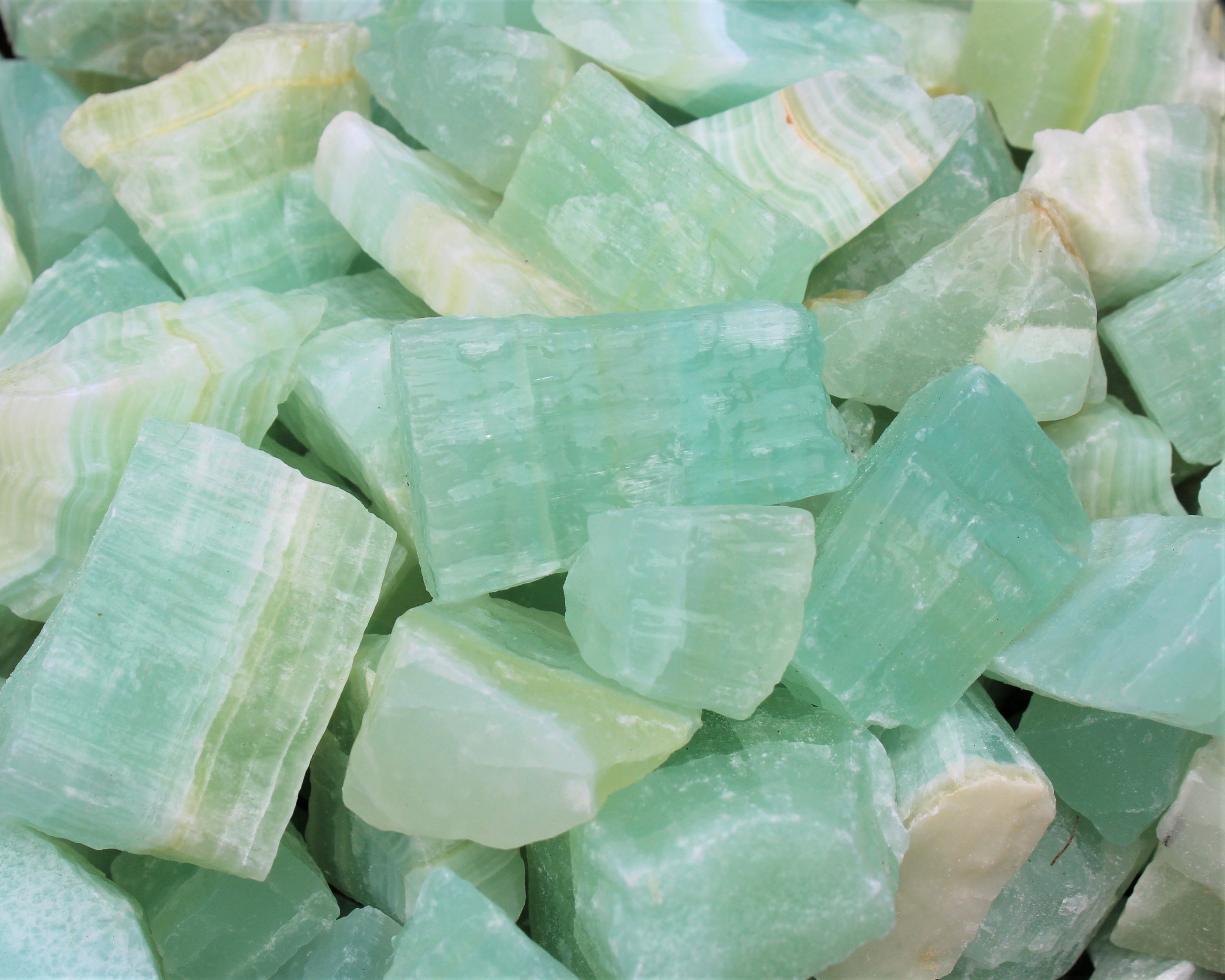Premium Grade pieces of Natural Rough Pistachio Calcite, size between about 1" to 2.5" +/- You can choose how many pieces you need from the drop down menu, bulk discounts as you buy more!