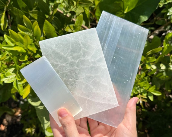 Polished Rectangular Selenite Charging Plate Station: Choose 4", 6" or 8" Crystal Plate (Crystal Cleaning, Charging & Purification Plate)