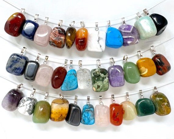 RARE Tumbled Gemstone Pendants - 'AAA' Quality Crystals With Sterling Silver Bail (Premium Quality Tumbled Stone Jewelry)